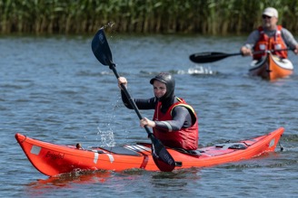 Guld ved DM i Havkajakteknik 2024 i 60+ rækken. Foto: Mogens Hansen