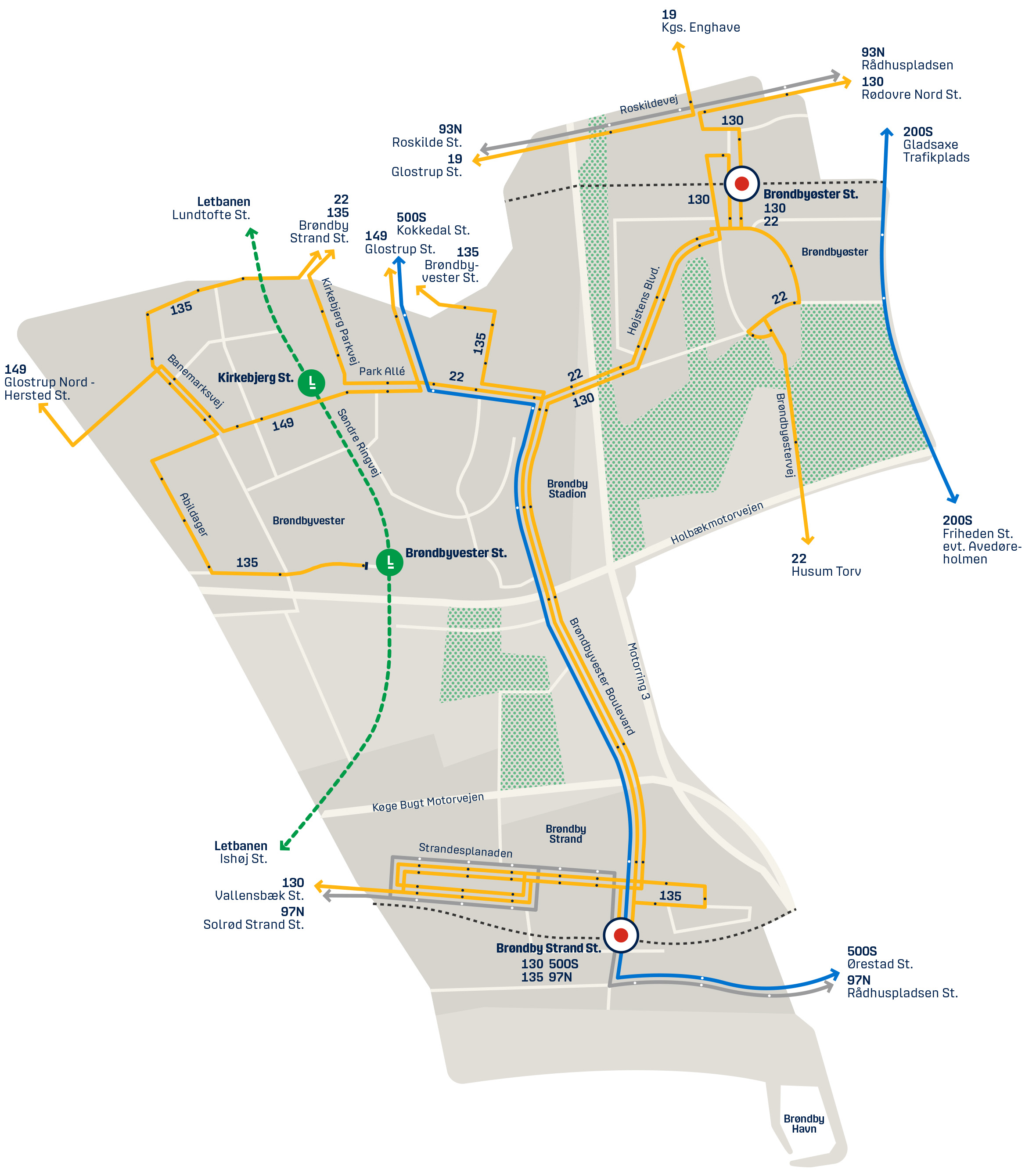 Når Nyt Ringnet træder i kraft, får buslinje 22 endestation ved Glostrup St. og vil dermed ikke køre omkring industri- og boligområderne i Brøndbyvester. Der kommer en ny buslinje - 135 - og buslinje 149 bliver forlænget til også at køre gennem Brøndbyvester.