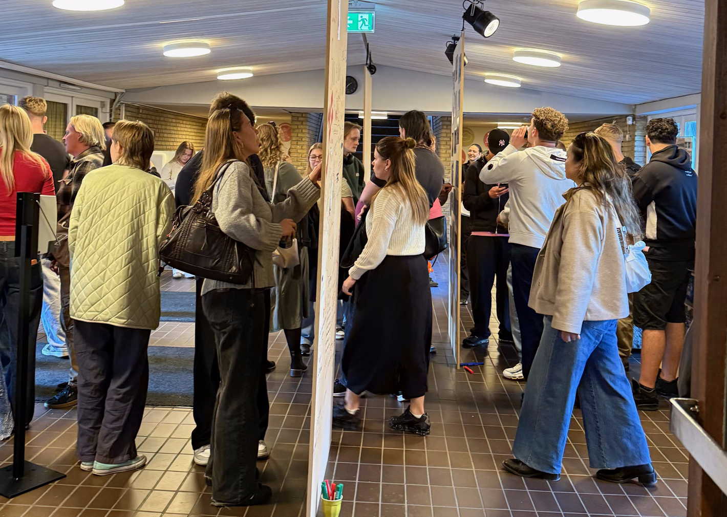 Senere på eftermiddagen var der gensynsglæde, da tidligere elever var inviteret til en hyggelig stund på skolen. I foyeren kunne de gå på opdagelse i store billedtavler med fotos fra de seneste 30 år – og mange fandt både sig selv og gamle skolekammerater blandt billederne. Snakken gik livligt om gamle dage, og der blev både grinet og delt minder med tidligere lærere.